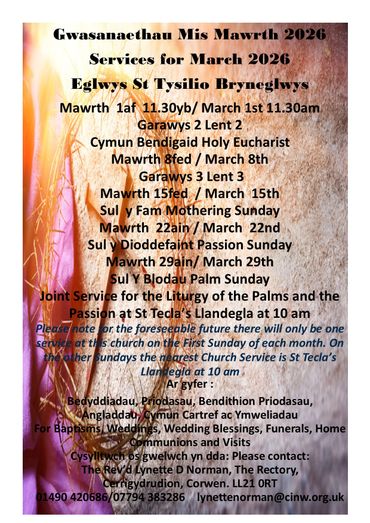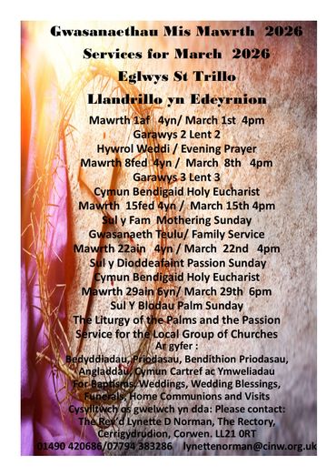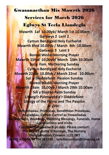 You’ll find posters, information and details of all the services, activities and events happening throughout Valle Crucis Mission Area CIO in the coming weeks. Please keep checking this page as it will be updated on a regular basis.